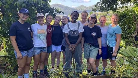 Am Montag, den 19. Januar haben wir uns gleich nach dem Frühstück in kleineren Gruppen zu unseren Working Days (Arbeitstag) aufgemacht. Aus dem Hafentor hinausgetreten, die Straße hoch und wieder runter und schon hatten wir einen Bus aus dem Verkehr gezogen, welcher uns den Berg hoch zu der Levisville Familly Farm, auf welcher wir Arbeit finden sollten, fahren sollte. Diese hoch eifrige und kompetente Gruppe bestand aus: Lisbeth, Laura, Muri, Mia Di, Hannah, Mia De, Inka, Luna und Lenya in Begleitung von Pädagogin Lilly. Nach etwas Verwirrung wo diese idyllische Farm sich befinden möge, hielt unser Bus schließlich vor einem unscheinbaren Wohnhaus, welches kaum auf eine Farm schließen ließ.
