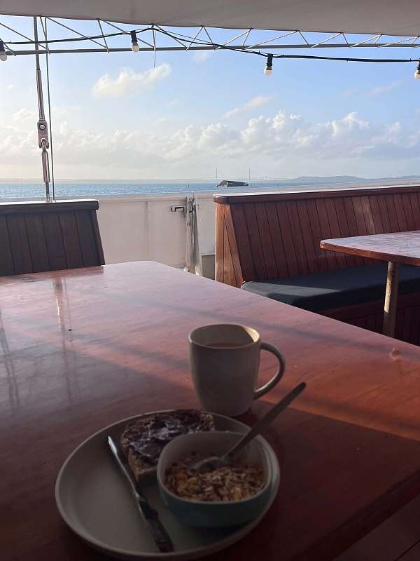 Frühstückck mit Blick auf den Panama Kanal © Becci